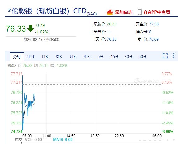 今日(2月16日)开盘,现货黄金、白银走低。现货白银今早一度跌逾3%。