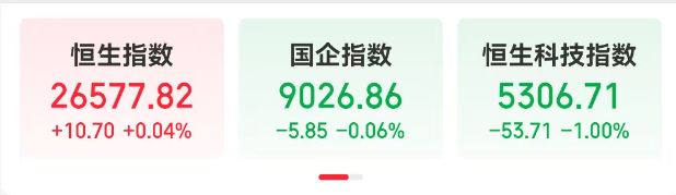 截至发稿,恒生科技指数跌1%,恒生指数涨0.04%。
