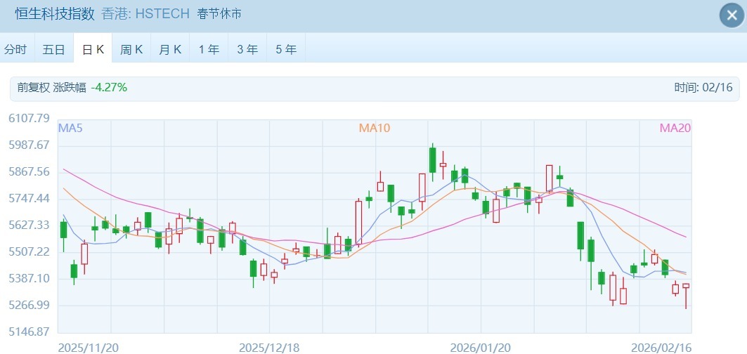 2月16日(除夕),港股迎来半日市交易(9:30—12:00),市场呈现低开后震荡回升态势,交投受港股通关闭影响相对温和,核心指数多数收涨,板块分化明显,AI概念股与贵金属板块成为今日最大亮点,为春节假期前的市场画上阶段性句号。