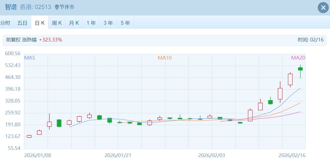 个股层面,AI概念股中,智谱作为“国产大模型第一股”,早盘高开,尽管随后涨幅收窄,但其2月以来股价累计上涨1.2倍,总市值超2200亿港元,成为科技板块目前市场最大的亮点。