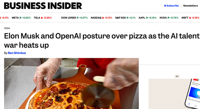【环球网科技综合报道】2月18日消息,据businessinsider报道称,一场看似轻松的“披萨之争”近日在社交媒体上引发广泛关注,实则折射出人工智能领域日益白热化的人才争夺战。埃隆·马斯克与OpenAI工程师就各自公司提供的免费披萨展开调侃式交锋,表面是柴火烤炉、面团发酵和校园厨师的比拼,深层则是xAI与OpenAI在吸引顶尖AI人才方面的公开角力。