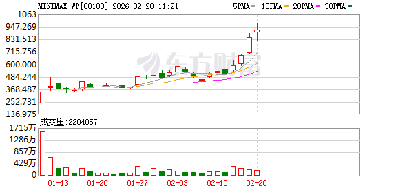 MINIMAX同步走强,盘中涨超15%,最高达980港元/股。