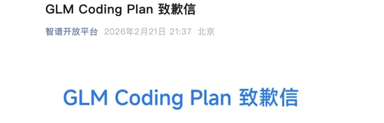 2月21日,有“全球大模型第一股”之称的智谱发布GLM Coding Plan致歉信,并公布处理和补偿方案。