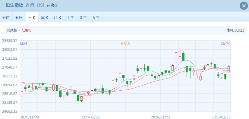 今日(2月23日),港股市场上演强势反攻,在前一交易日调整后实现惊天反转。