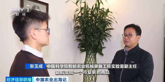 中国科学院智能农业机械装备工程实验室副主任 张玉成: 科技走出实验室变成产品,最后变成可复制的商品。靠我们现在国家现有的科技力量投入和那么多的人才储备,我相信是完全有基础的。来(向世界)提供中国的先进的现代化农业生产解决方案。