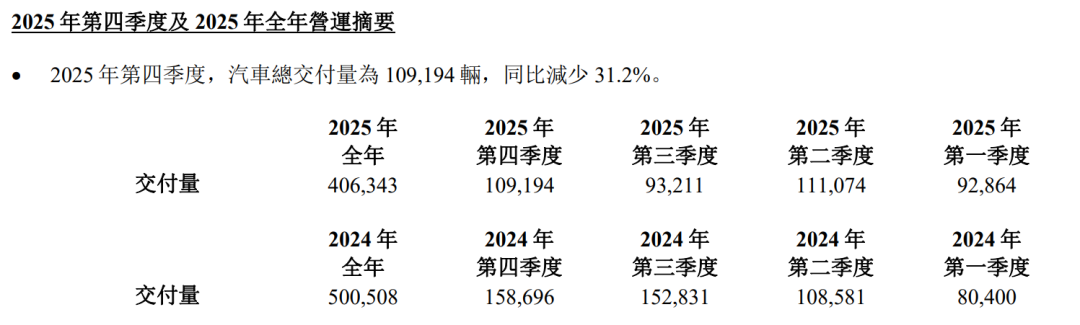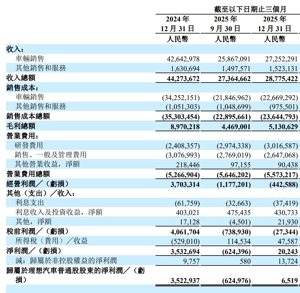 而根据刚发布的 2025 年第四季度财报,理想则是实实在在的在主业上重回亏损 —— 经营亏损达到 4.4 亿元。