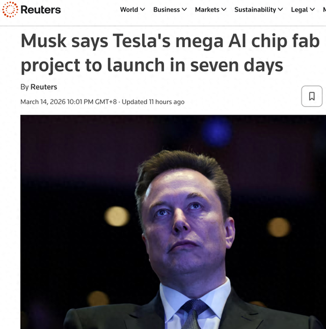 【环球网科技综合报道】3月15日消息,据路透社报道称,特斯拉首席执行官埃隆·马斯克日前正式宣布,备受瞩目的特斯拉自主芯片制造项目——“Terafab”超级工厂,将于七天内正式启动建设,旨在彻底解决其自动驾驶系统及人形机器人业务面临的算力瓶颈。