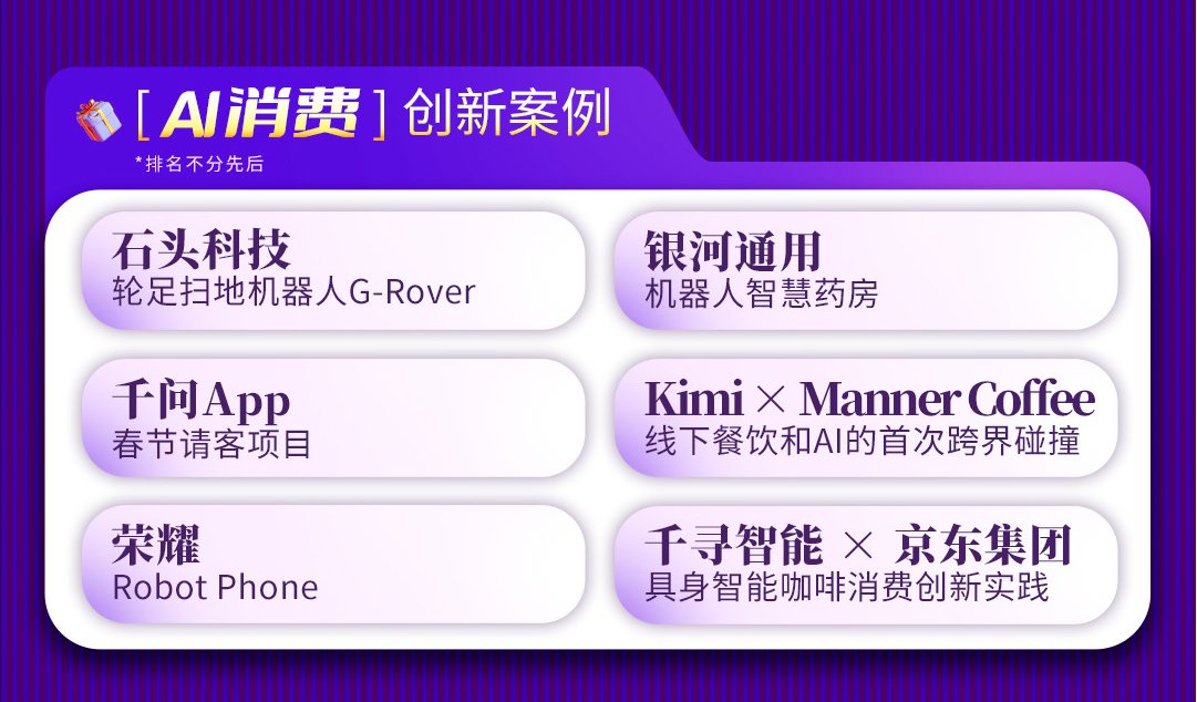 今年的AI消费创新上榜者,均呈现出技术、产品双重升级的特点:一方面是AI为产品带来的功能升级;另一方面,AI开始在家庭、商业等场景实现突破性应用,更加贴近用户的日常生活。