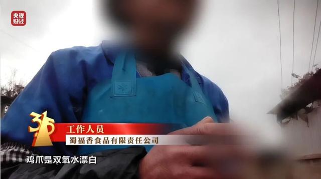 据央视财经,“3·15”晚会的记者在鸡爪销售火爆的川渝地区展开调查,在未办理健康证、未做任何健康体检、未经过任何卫生消毒的情况下,记者很轻松地进入成都市明扬食品生产车间,这里正是为蜀福香食品有限责任公司鸡爪产品进行前期加工的场所。