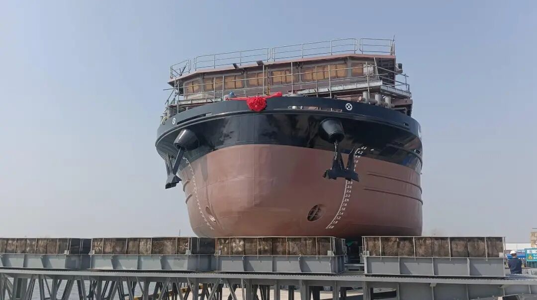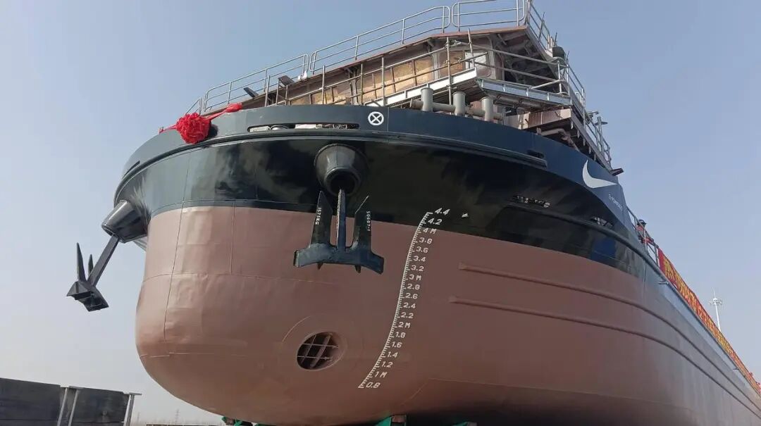 下水后,该船经过近两个月水面舾装试运行,将被投入到越南内河运营,助力打造当地首条绿色内河航线。为了适应境外内河环境,船体采用流线型优化设计,有效降低航行阻力,并在船首配备动力推进装置,可在当地复杂内河航道灵活转向。