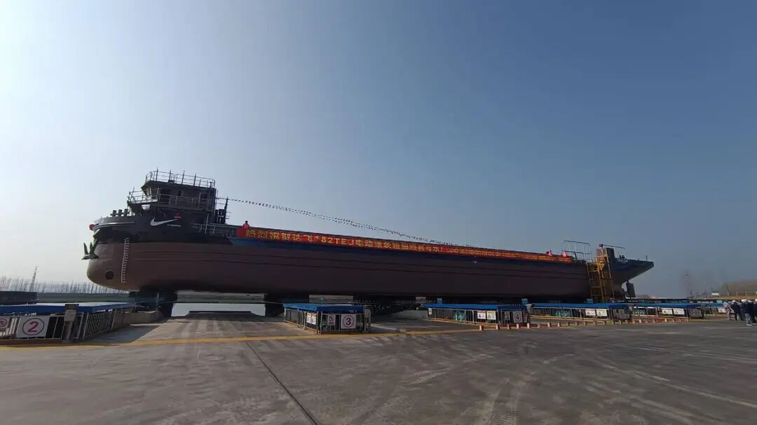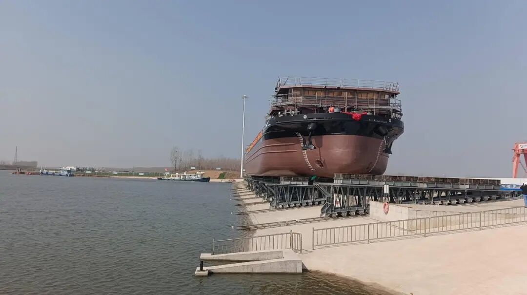 3月19日上午,国内首艘出口纯电内河集装箱船在济宁白马河畔下水试运行,中国自主研制的绿色内河船舶开始驶入国际市场。