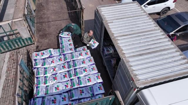 一大早,装满化肥的卡车陆续驶入同江市供销经营点,工人们手脚麻利地忙着卸货、搬运。一袋袋化肥被大家接力传递,动作娴熟利落,转眼之间,仓库里就堆起了一座座小山。货架前,农户李成旭正仔细查看肥料样品,向工作人员详细咨询品种的抗病性与适宜地块,当场敲定了今年所需的肥料和种子用量。工作人员很快根据农户的订购清单快速分装、仔细核对,随后带着备好的农资直奔田间地头,整套服务流程一气呵成,用高效服务助力农户备耕。