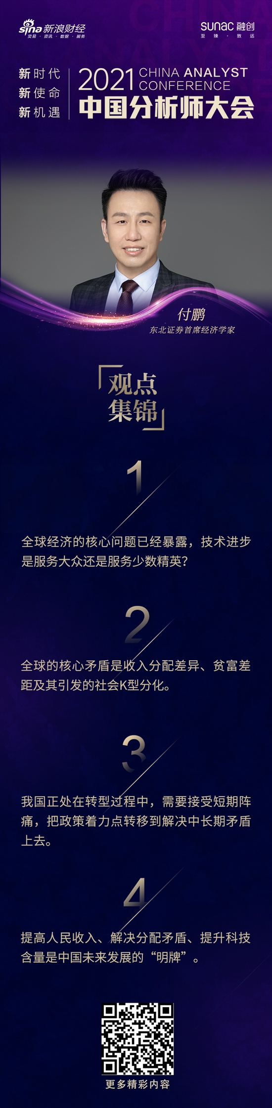今天,2021中国分析师大会暨第三届新浪财经金麒麟最佳分析师颁奖盛典隆重召开。东北证券首席经济学家付鹏围绕新格局下的全球经济运行发表了看法。