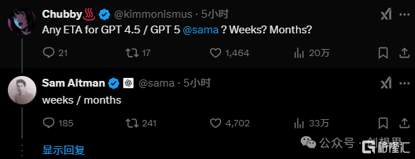 奥特曼并未明确说明GPT-4.5和GPT-5的具体发布时间,但他估计可能在“数周或数月”内发布,敬请期待。