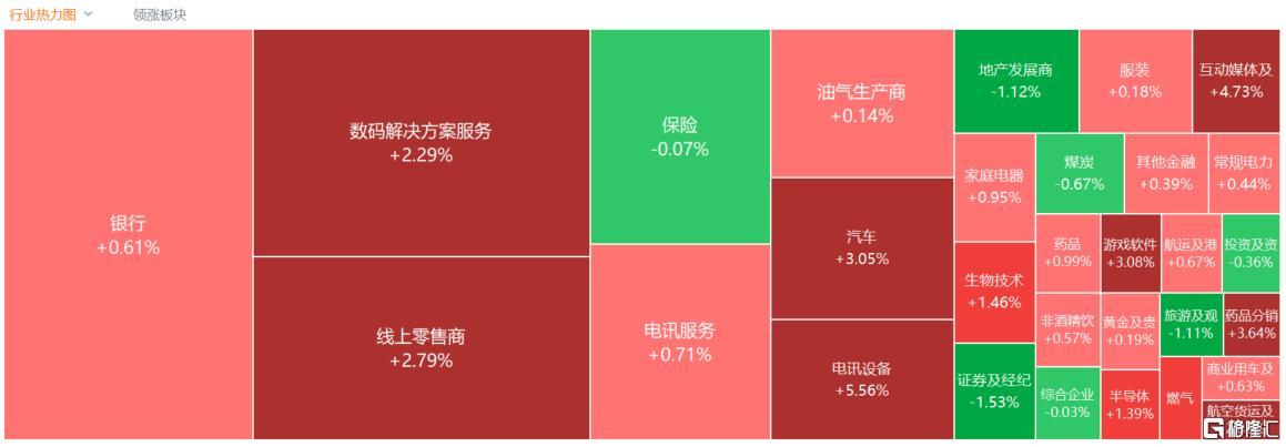 汽车股普涨,吉利汽车涨超5%,比亚迪股份、小鹏汽车、蔚来涨超3%,理想汽车、长城汽车等跟涨。