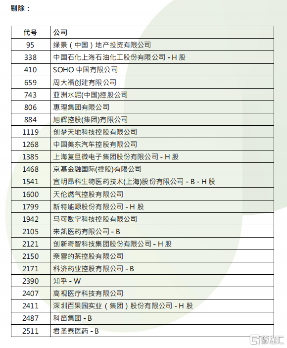 根据港股通的调整规则,恒生综合指数成份股的变动将影响港股通可投资证券的调整。
