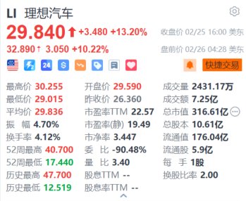 格隆汇2月26日|理想汽车(LI.US)盘前续涨超10%,报32.89美元。消息面上,理想汽车的首款电动SUV车型i8公布侧面官图,i8尺寸略大于Model X,可能更聚焦家用市场。新车有望在上海车展首次亮相,并于上半年正式上市。