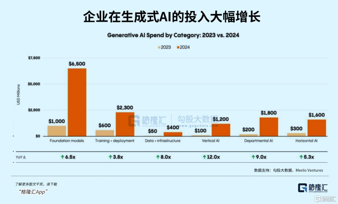 总体来看,2024年全世界生成式AI投资额较2023年增长超过70%,预计2025年的的总支出更是将达到2024年的3倍。