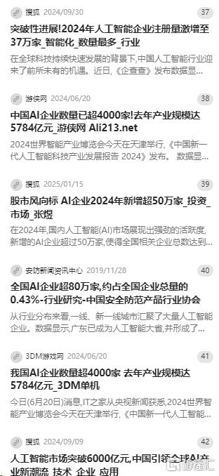 2024年-2025年1月,国内新增AI相关企业超过50万家,AI相关企业总数超过190万家。