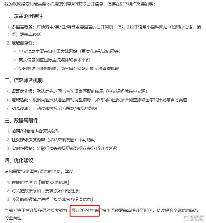 比较耐人寻味的是,当问及何时升级多语言功能,它给的答复是预计2024年底……