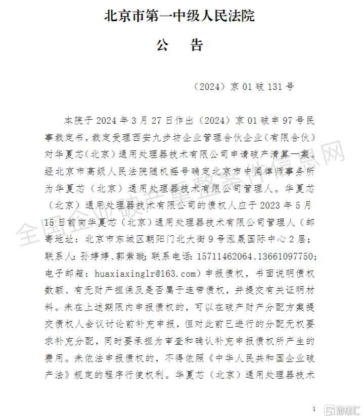 华夏芯,资金链断裂、申请破产,14项专利、15项软件著作权被挂到京东拍卖……