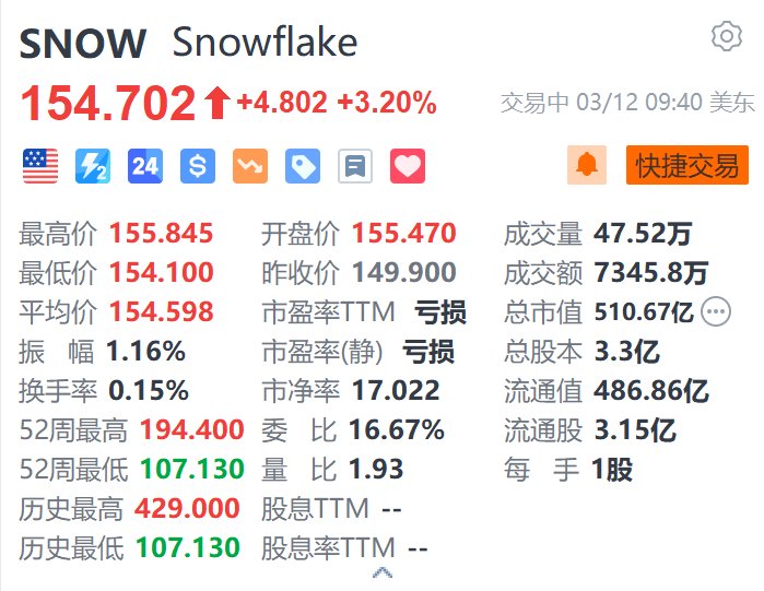 格隆汇3月12日|数据储存公司Snowflake(SNOW.US)涨3.2%,报154.7美元。消息面上,据The Information,谷歌正与Snowflake商讨一项交易,以提高其人工智能模型Gemini的安全性。该交易将允许敏感领域的“高度受监管公司”通过Gemini建立应用程式,而不必担心谷歌会将资讯纳入其模型或泄露给其他客户。(格隆汇)