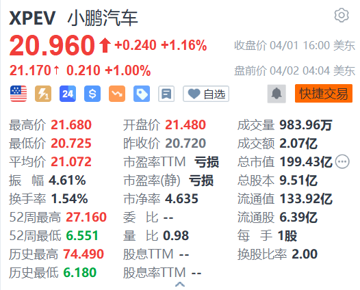 昨日收涨1.16%的小鹏汽车(XPEV.US)今日美股盘前续涨1%,报21.17美元。消息面上,2025年3月,小鹏汽车共交付智能电动汽车33,205辆,同比增长268%。小鹏汽车已连续第五个月交付量超过了30,000辆。2025年第一季度,小鹏汽车共累计交付94,008辆智能电动车,同比增长331%。
