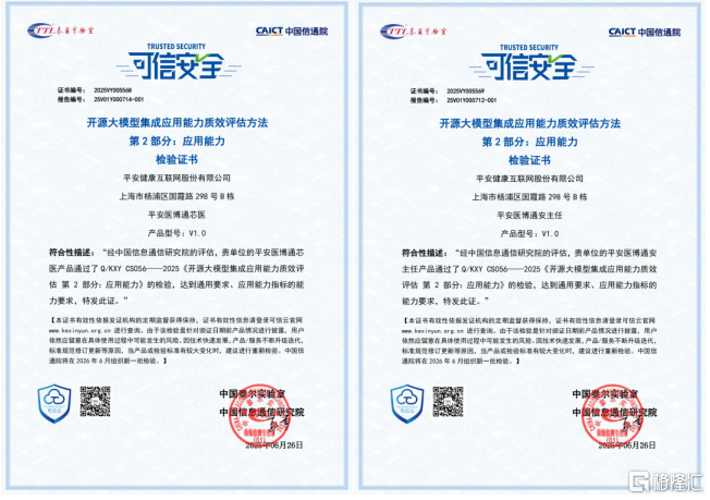 同时,"平安芯医"、"安主任"还成功通过了中国信通院"开源大模型集成应用能力质效评估",通过对产品应用能力维度的检验,平安好医生医疗AI产品的模型接入应用成效、风险管理水平及技术能力建设水平获得权威机构的专业认可。