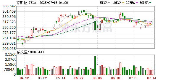 特斯拉股价周一上涨1%,收于略低于317美元的水平,自今年年初以来已累计下跌逾16%。
