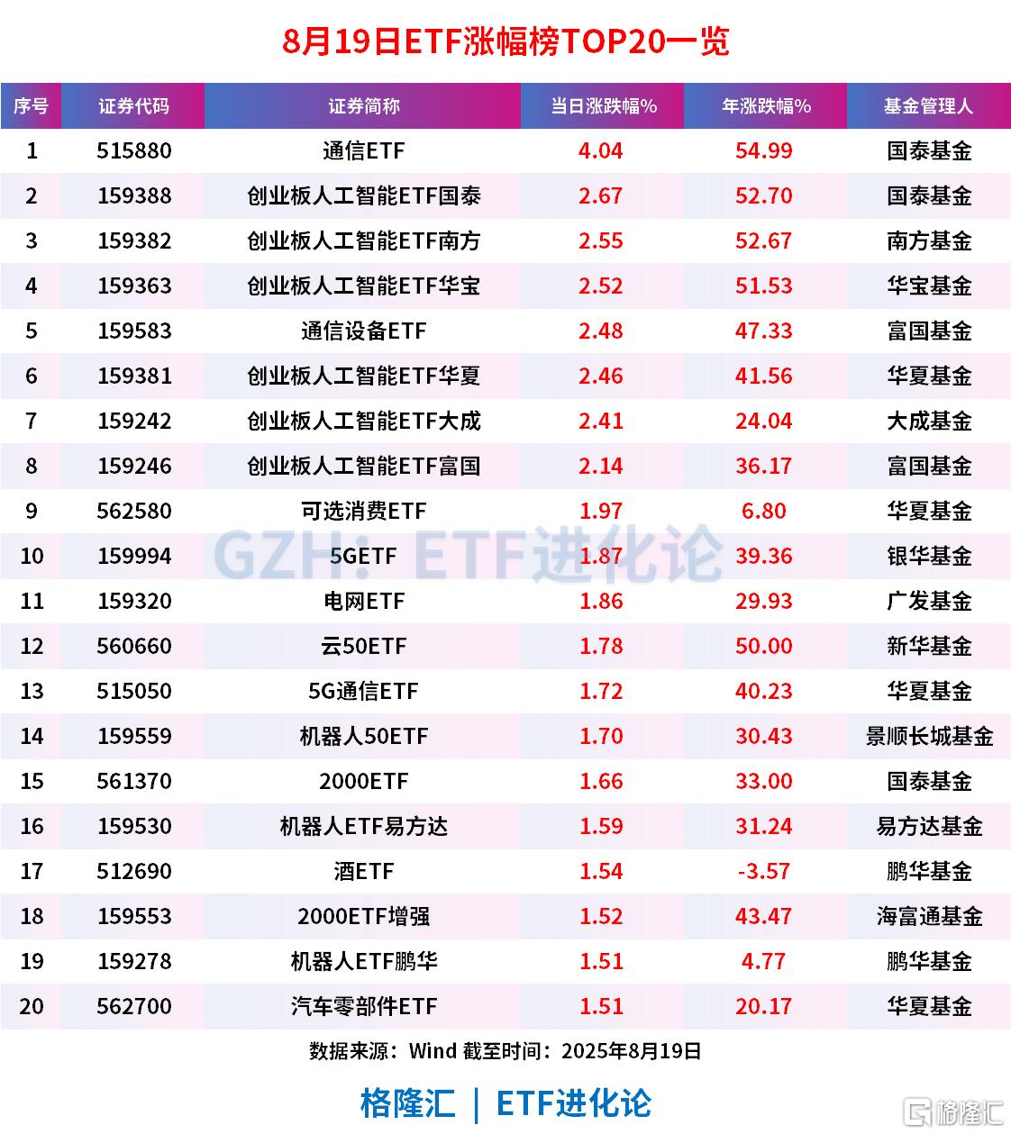 ETF方面,国泰基金通信ETF涨4%,创业板人工智能ETF国泰、创业板人工智能ETF南方、创业板人工智能ETF华宝分别涨2.67%、2.55%和2.52%,富国基金通信设备ETF、创业板人工智能ETF华夏、创业板人工智能ETF大成分别涨2.48%、2.46%和2.41%。