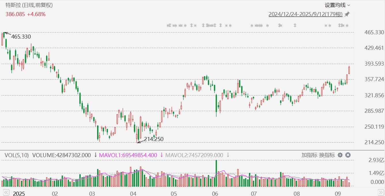 格隆汇9月12日|特斯拉股价涨幅扩大至超5%,报388.4美元,股价创2月4日以来新高,连续两日涨幅超5%。消息面上,特斯拉推出的Model YL已在中国市场售罄,新订单显示最早预计交付时间为2025年11月。