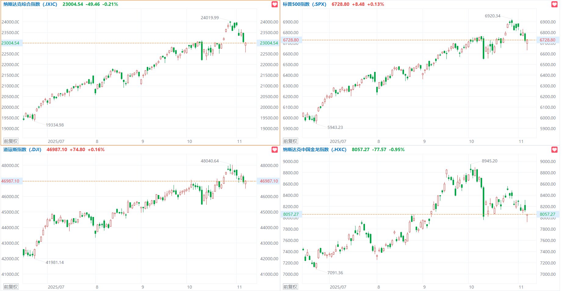 格隆汇11月8日|美股三大指数收盘涨跌不一,终结此前周线三连涨。纳指跌0.21%,标普500指数涨0.13%,道指涨0.16%。大型科技股涨跌不一,特斯拉跌超3%,谷歌跌逾2%,苹果、微软小幅下跌;英特尔涨超2%,英伟达、奈飞、亚马逊、Meta小幅上涨。其中,微软连跌8天,创2011年11月以来最长连跌天数。