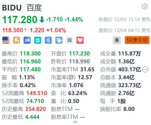 百度(BIDU.US)盘前涨1.04%,报118.5美元。美银证券发报告指,百度已自主打造了完整的AI全栈基础设施与服务,包括具备吸引第三方客户能力的自研AI芯片、全球领先的无人驾驶出租车、快速增长的云业务、先进的大模型、多场景应用落地。报告指,第三季,百度AI相关业务收入按年增长50%至100亿元人民币,已经占百度核心业务总收入约40%。该行预计AI相关业务将保持高速增长,逐步抵消传统业务的下滑,并带动百度核心业务总收入于2026年第二季重新转正。重申对百度“买入”评级,目标价151美元。