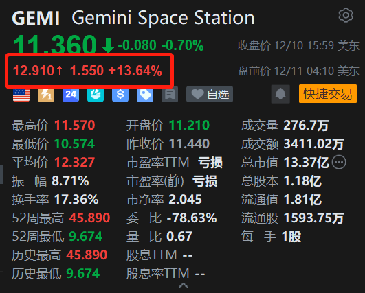 Gemini Space Station(GEMI.US)盘前涨13.6%报12.91美元。消息上,Gemini Space Station的衍生品交易所申请已获得美国商品期货交易委员会(CFTC)的批准。Gemini尚未公开表示计划在该交易所交易哪些产品,但在监管文件中提到了涵盖各种预测的预测市场。此次批准使得Gemini有可能加入预测市场领域,并扩大业内原生加密公司的数量。