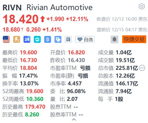上周五(12日)大幅收涨12.11%的Rivian(RIVN.US)今日美股盘前续涨1.41%,报18.68美元。消息面上,Rivian在公司“自驾&AI日”活动上宣布,将在即将推出的R2 SUV中搭载“RAP1”(Rivian自驾处理器)芯片,以取代英伟达的技术。未来Rivian的车载计算模块将由两个RAP1芯片驱动,每秒可处理50亿像素,可实现1600万亿次运算/秒的运算速度——四倍于现款依赖英伟达芯片系统的运算速度。此外,高盛最新将Rivian的目标价从13美元上调至16美元,维持“中性”评级。(格隆汇)