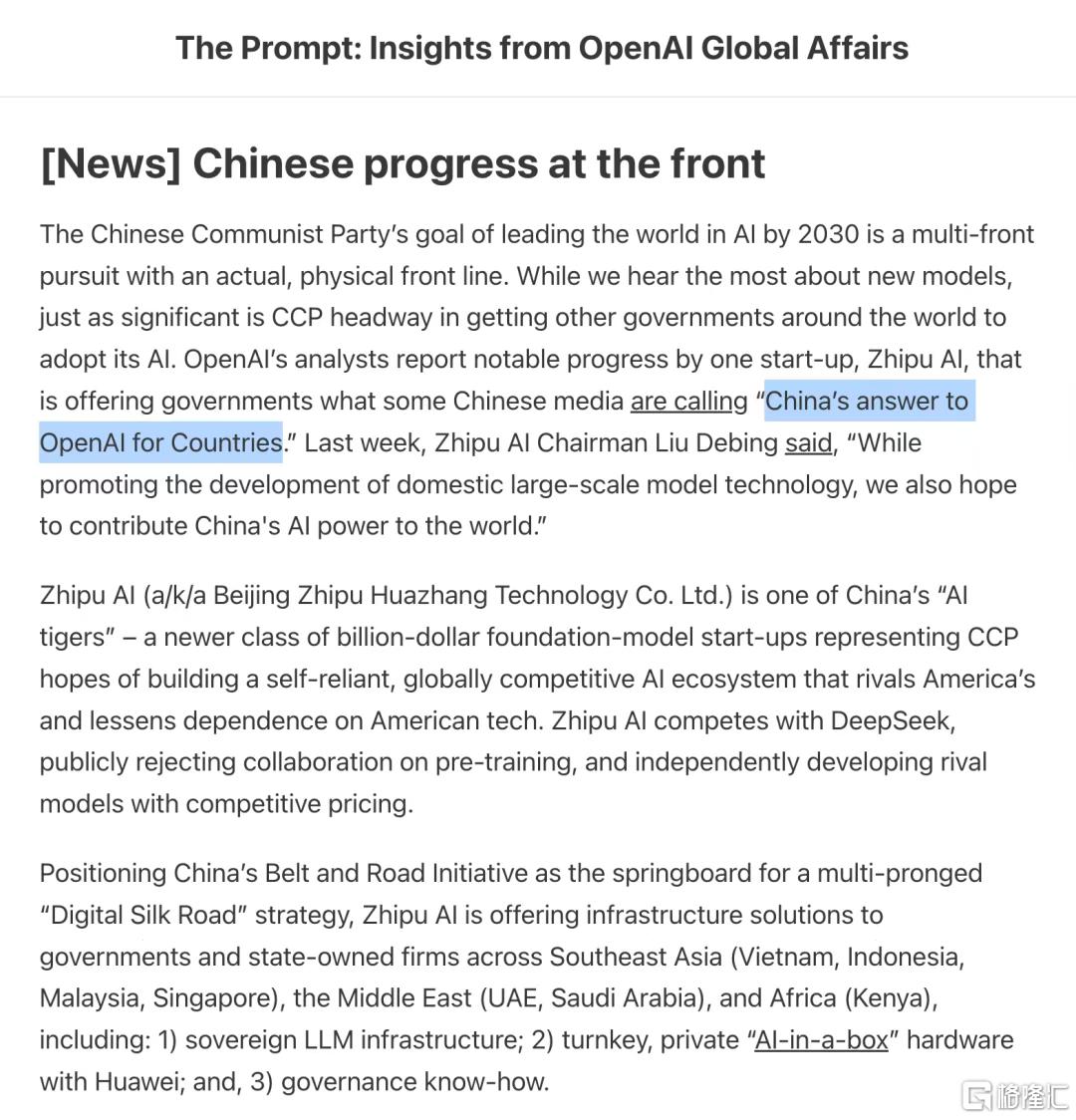 相比之下,智谱的价值则深植于更底层、更基础的技术基座之中。智谱被认为是中国的OpenAI。OpenAI在2024年6月的官方博客中称智谱为"头号竞争对手"。