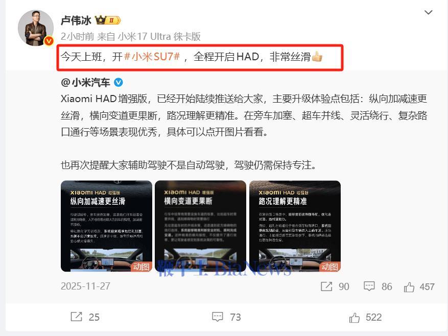 今日上午,卢伟冰发布上班动态,明确显示正常履职。