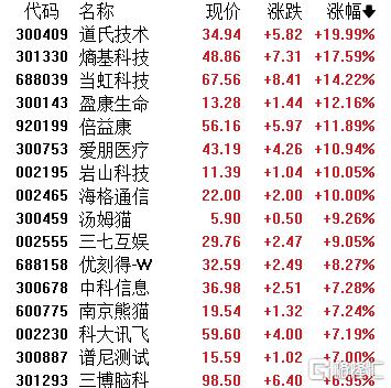 脑机接口板块上扬,道氏技术20CM涨停,熵基科技、当虹科技、盈康生命、倍益康、爱朋医疗、岩山科技等大涨。
