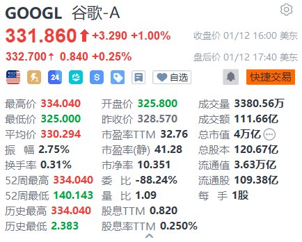 格隆汇1月13日|谷歌A类股(GOOGL.US)收高1%,成交111.32亿美元,市值突破4万亿美元。消息称苹果将与谷歌达成合作,为其今年晚些时候推出的Siri等产品的人工智能功能提供技术支持。这项为期多年的合作将借助谷歌的Gemini模型和云技术,助力苹果开发未来的基础模型。