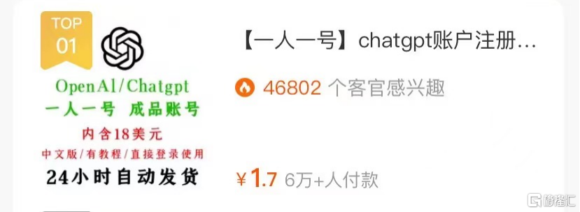 于是,帮人代注册账号的卖家成为了靠着ChatGPT赚到钱的第一波人。