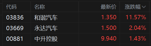 和谐汽车继续大涨超11%,5日连涨超32%引领近期汽车经销商股上涨,永达汽车、中升控股均有涨幅。
