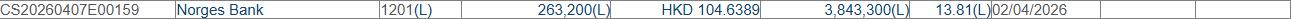 格隆汇4月8日丨根据联交所最新权益披露资料显示,2026年4月2日,凯莱英(06821.HK)遭Norges Bank在场内以每股均价104.6389港元减持26.32万股,涉资约2754.1万港元。