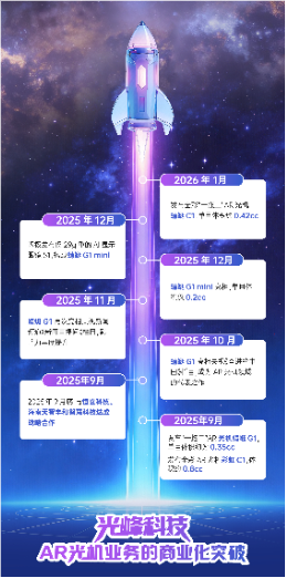 光峰科技对这一趋势有着精准洞察与敏捷响应。其AR光机产品在短短四个月内完成迭代,从2025年9月推出蜻蜓 G1,到 2026 年1月升级至蜻蜓 C1,光峰科技在 AR 光机领域进入技术爆发期。这种跨越式进步,离不开企业多年的技术沉淀。