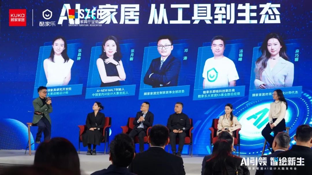 活动邀请了深圳市家具行业协会主席侯克鹏、深圳市家具行业协会秘书长关莹锋、AI-NEWMALT创始人&中国室内AI设计大赛发起人张月新、群核科技副总裁&酷家乐大家居KA事业群总经理汤锡峰、群核科技联合创始人兼CTO朱皓、泛家居圈创始人周忠以及定峰汇&大家居洞察创始人杨峰等嘉宾出席发布会,推动着家居设计向“AI驱动”新时代迈进,以技术革新为行业数实融合注入强劲动力。