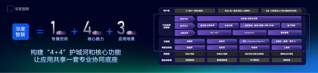 这得益于深度智联已构建了“4 4”护城河和核心功能,即1个专属空间,4个核心能力和3个应用场景。