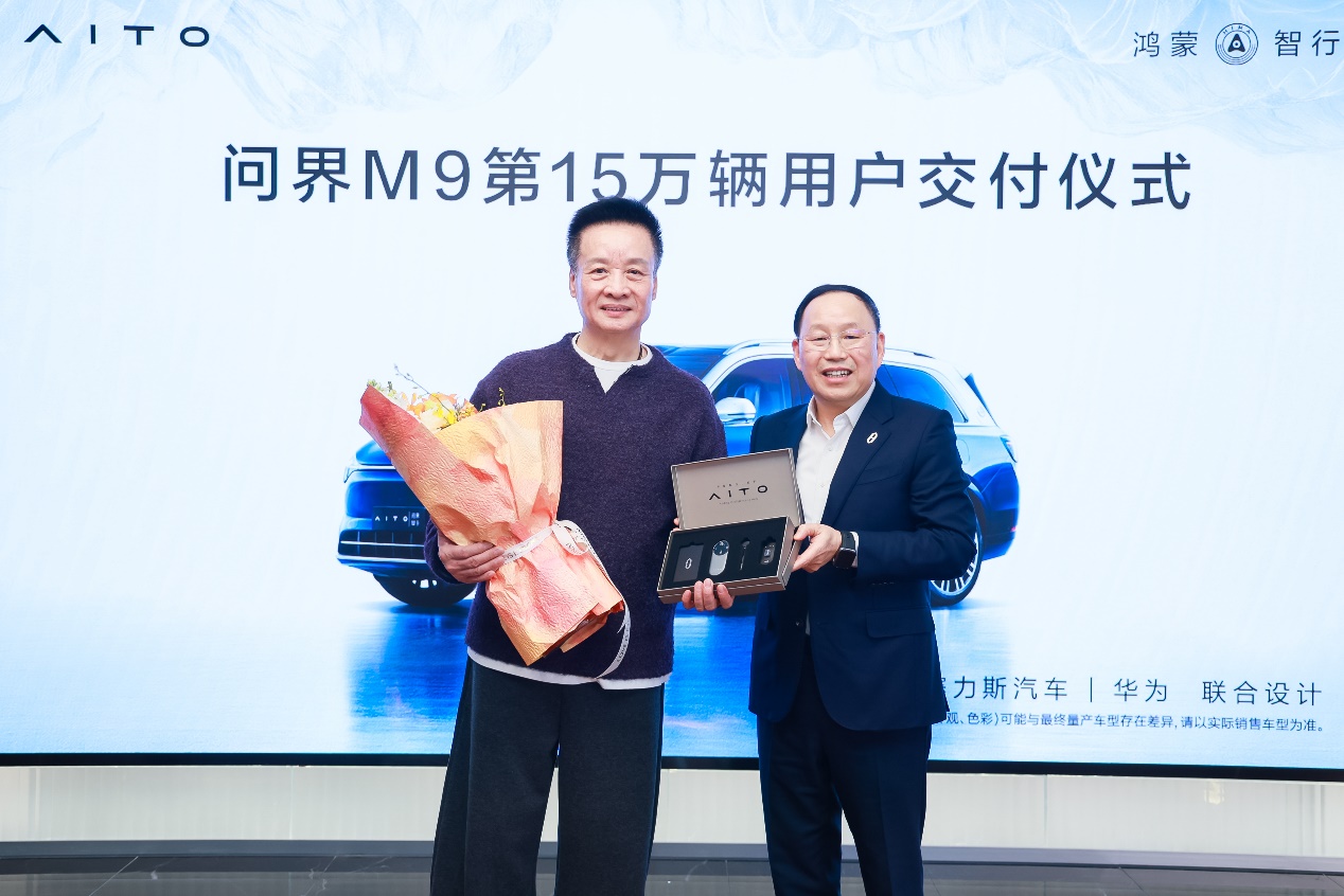 2025年1月8日,问界M9第15万辆用户交付仪式在北京举行。赛力斯集团董事长(创始人)张兴海向著名男高音歌唱家、艺术家阎维文老师交付问界M9第15万辆新车钥匙,共同见证了“世界级好车”问界M9开启崭新篇章的历史性时刻。