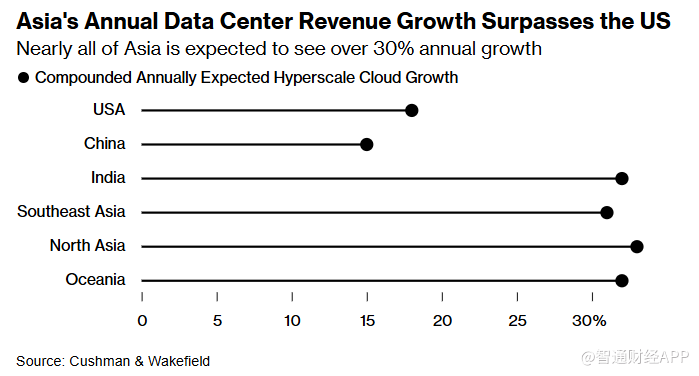 这些交易凸显了数据中心行业对银行和房地产等投资者的吸引力,还表明亚洲已成为数据中心的热门投资地点。房地产服务公司Cushman and Wakefield的数据显示,到2028年,亚洲的数据中心需求将以每年约32%的速度增长,超过美国18%的预期增速。不过,美国的关税政策可能会成为该行业的一个不确定因素。