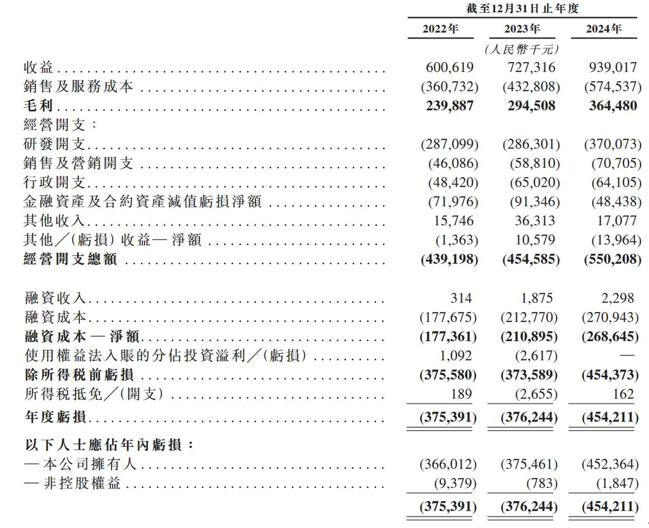 财务方面,于往绩记录期间,云知声的收入主要来自销售AI产品及解决方案。于2022年、2023年及2024年,云知声的收入分别约为人民币6.01亿元、7.27亿元及9.39亿元,复合年增长率为25%;同期毛利润分别约为人民币2.4亿元、2.95亿元及3.64亿元,复合年增长率为23.3%。