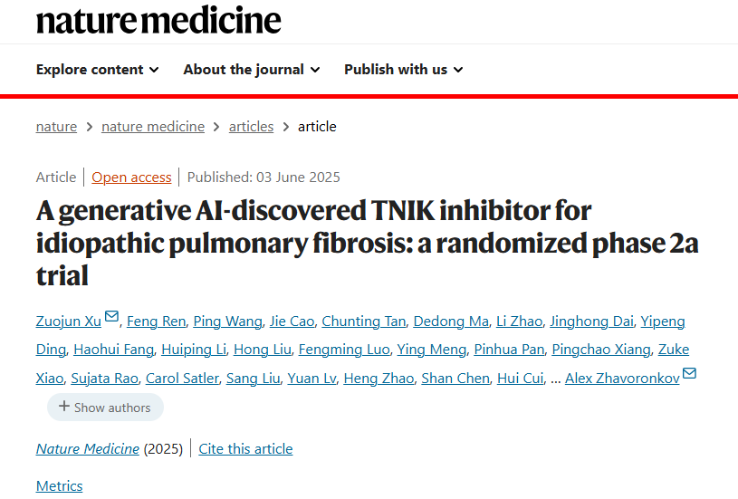AI制药公司英矽智能的在研药Rentosertib有了新突破。6月3日,Rentosertib的IIa期临床研究结果被刊登于全球顶尖学术期刊《自然•医学》(Nature Medicine)。IIa期数据初步验证了该药物分子的安全性和有效性,Rentosertib成为目前全世界进展最快的AI药物。
