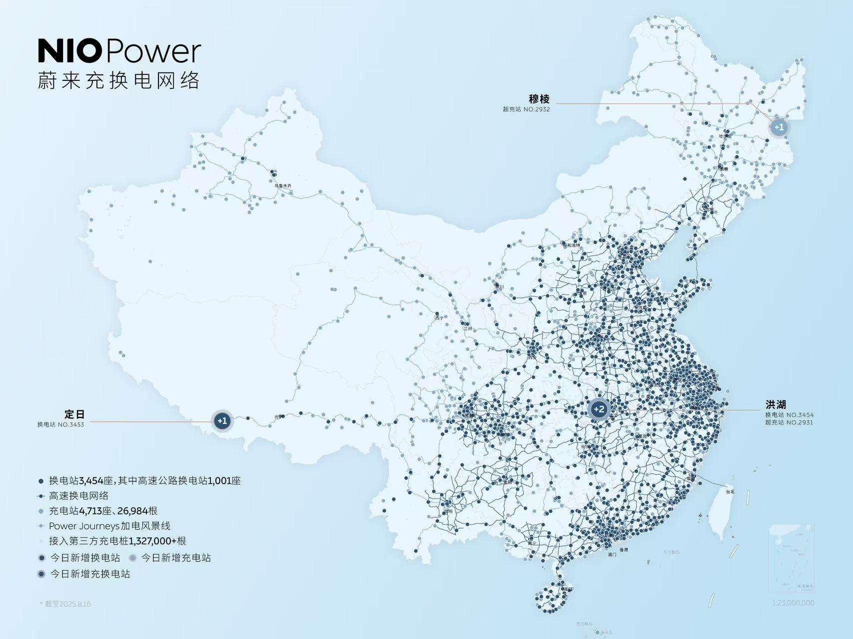 智通财经获悉,2025 年 8 月 16 日,蔚来创始人、董事长、CEO李斌在Power UP 2025蔚来加电日表示,蔚来(09866)在全国已布局8167座充换电站,充换电站建设数量行业第一,蔚来全国充换电站网络布局已基本形成,正式进入攻坚加密的建设新阶段。当日,位于西藏定日珠峰的蔚来换电站也正式上线,并投入运营,这是蔚来在G318川藏线上布局的第15座换电站,随着定日珠峰蔚来换电站上线,蔚来G318川藏换电路线正式贯通,该线路全长2950km,平均每200km就有一座蔚来换电站,依托全国超3400座换电站,含1000多座高速公路换电站,蔚来和乐道用户可以全程换电到珠峰。